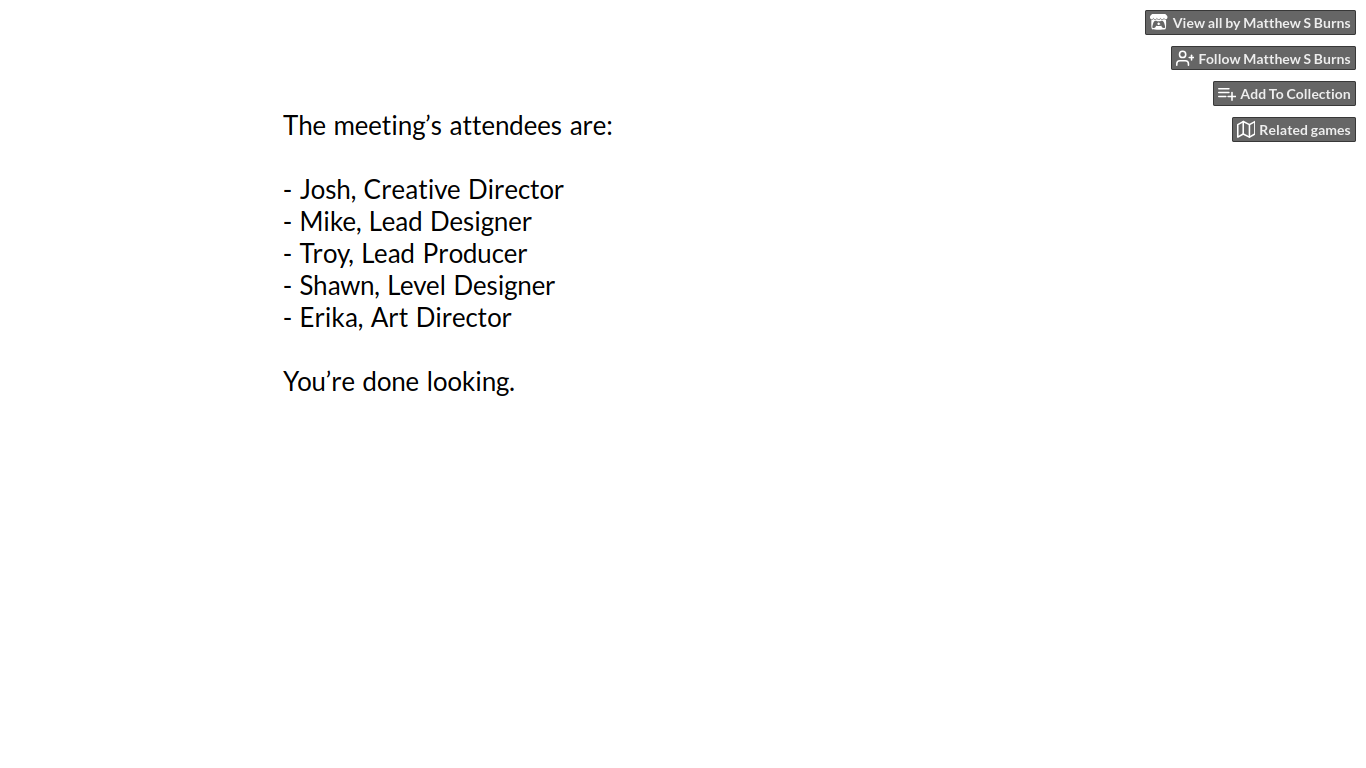 Грати та аналізувати гру — це корисний спосіб кинути виклик цим припущенням. Можна почати з легкої гри "The Writer Will Do Something". У ній гравці опиняються на місці сценариста, який бере участь у розробці нової відеогри. Це допомагає показати, як наративні рішення впливають на кінцевий результат, а також як працює інтерфейс Twine.