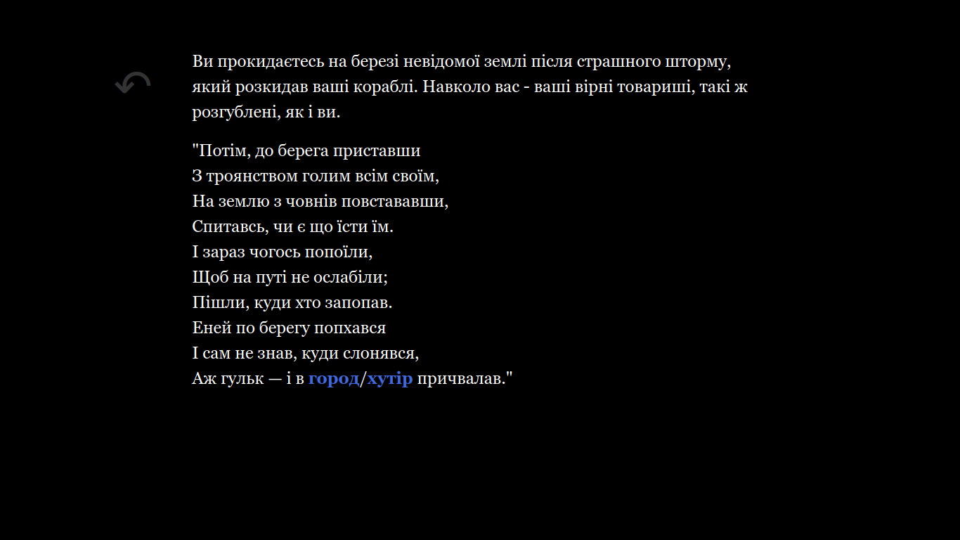 Рекомендоване цитування: Кірілов, Ґабі. "Створення інтерактивних текстових ігор у гуманітаристиці: Робота з Twine." Programming Historian, переклала Орися Віра, Посібник з цифрової історії, 2024. DOI: https://doi.org/10.69915/dh020