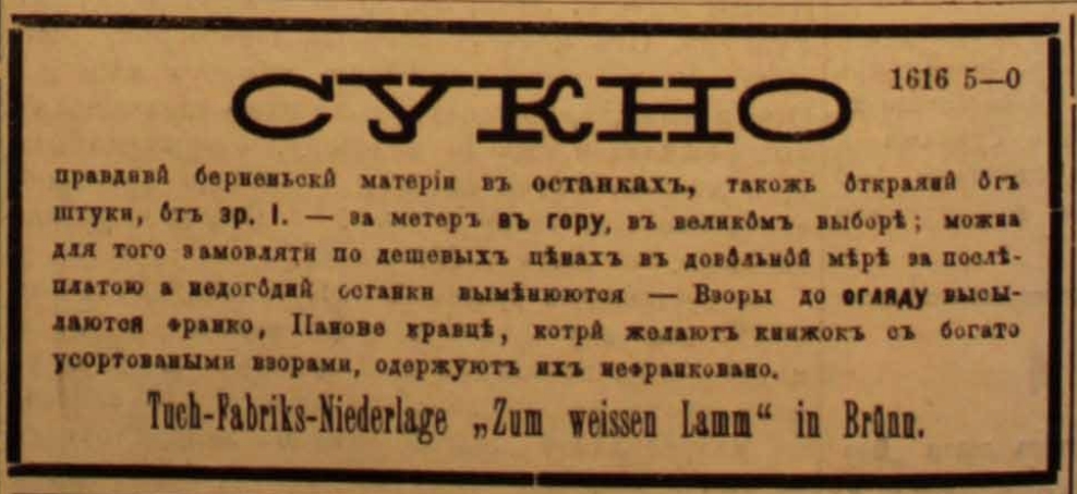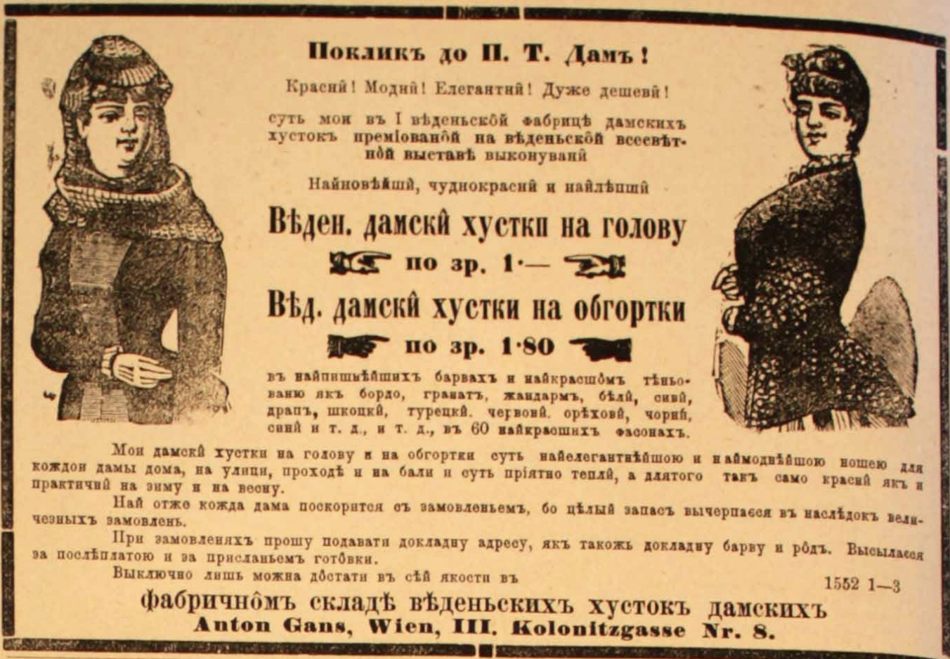 Скажімо, можна використати оголошення, які були надруковані у газеті "Діло", що виходила у 1880-1939 роках у Львові.